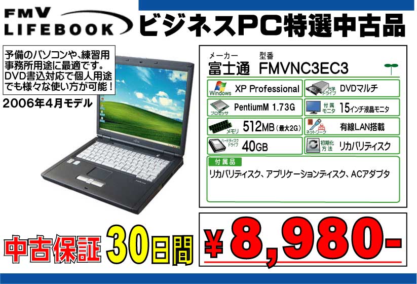 富士通 LIFEBOOK FMVA77ERKS (某量販店モデル) を特価大放出です!