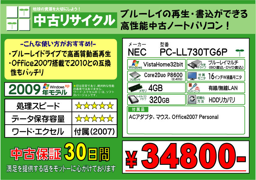先日、ご案内しました 限定1台の 富士通Corei7ノートは即、完売と