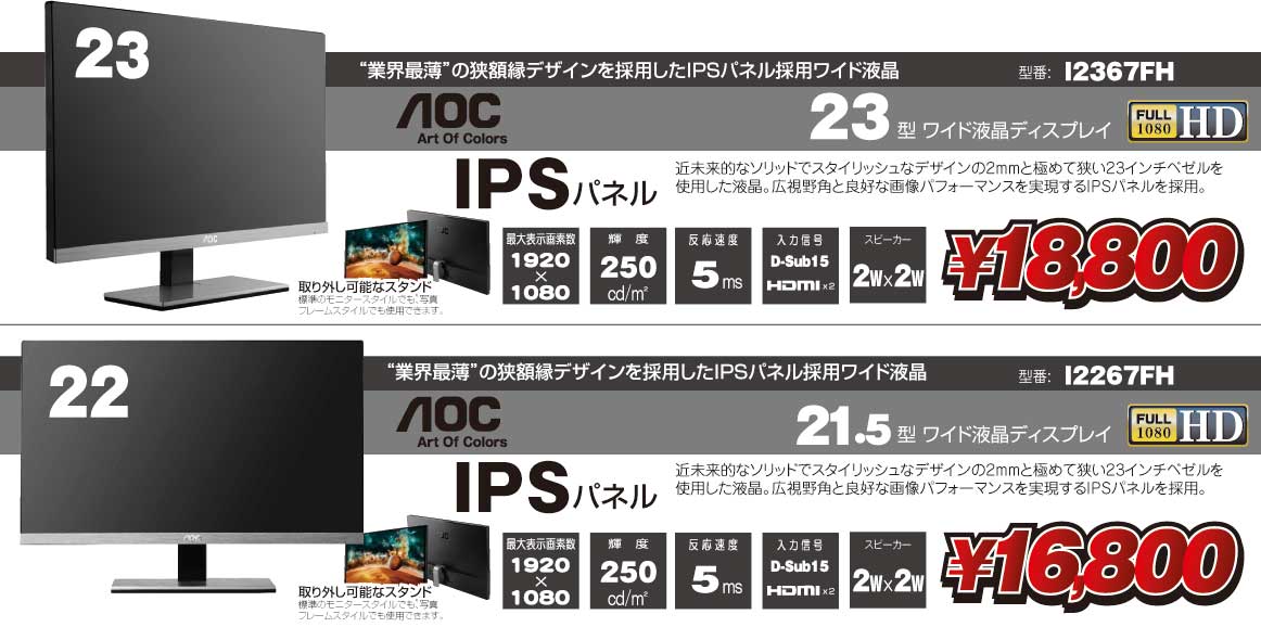 ■■■ AOCスタイリッシュ液晶入荷! ■■■