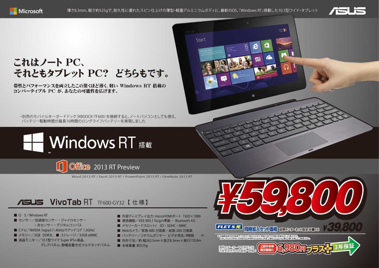 キーボードが外れて タブレットになる アレですよ。 ※キーボードは別売りです。