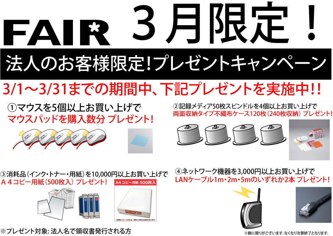 明日より、3月末まで法人様向けのプレゼントキャンペーンも開始します!