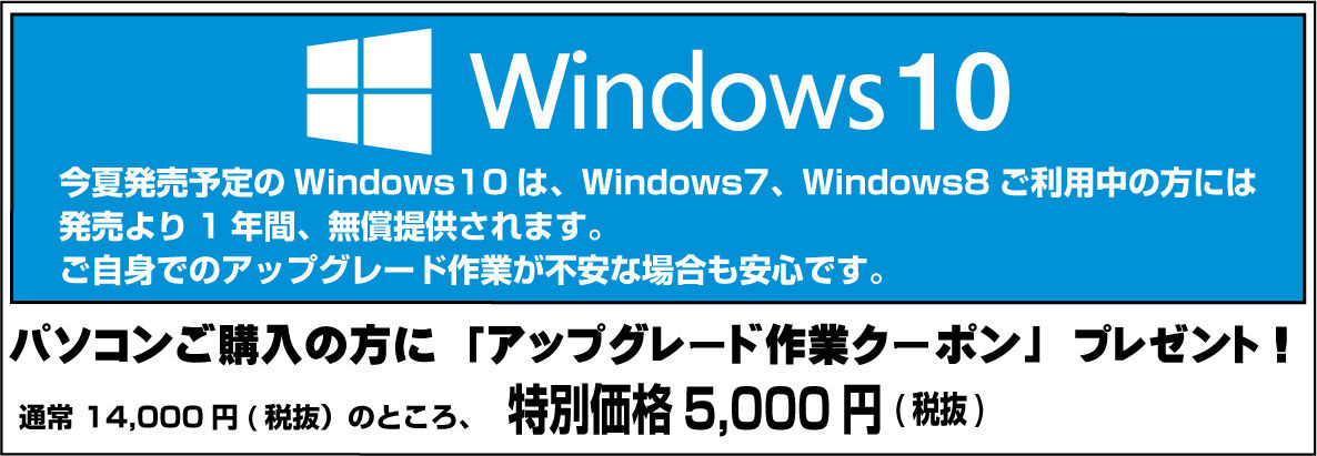 7/29公開予定のWindows10へのアップグレード作業割引券を配布中!