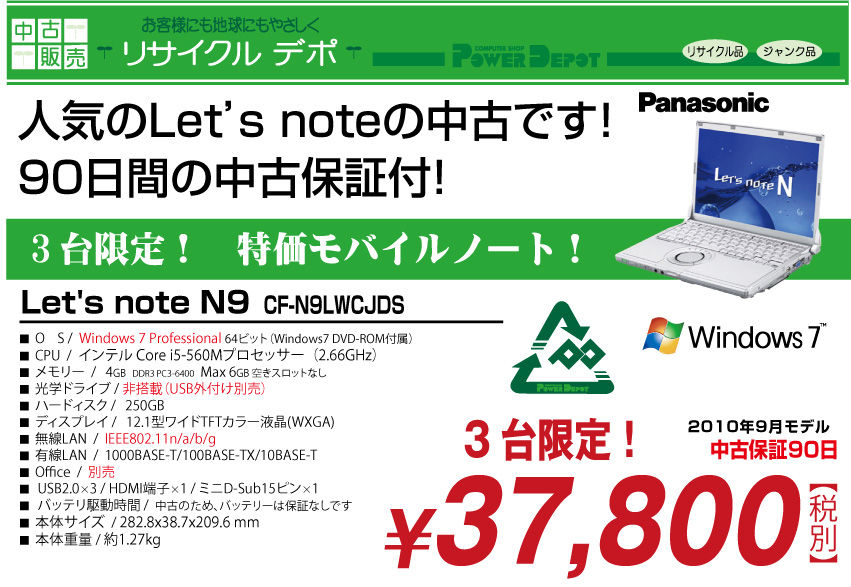 ◆◆Panasonic中古レッツノートです!◆◆