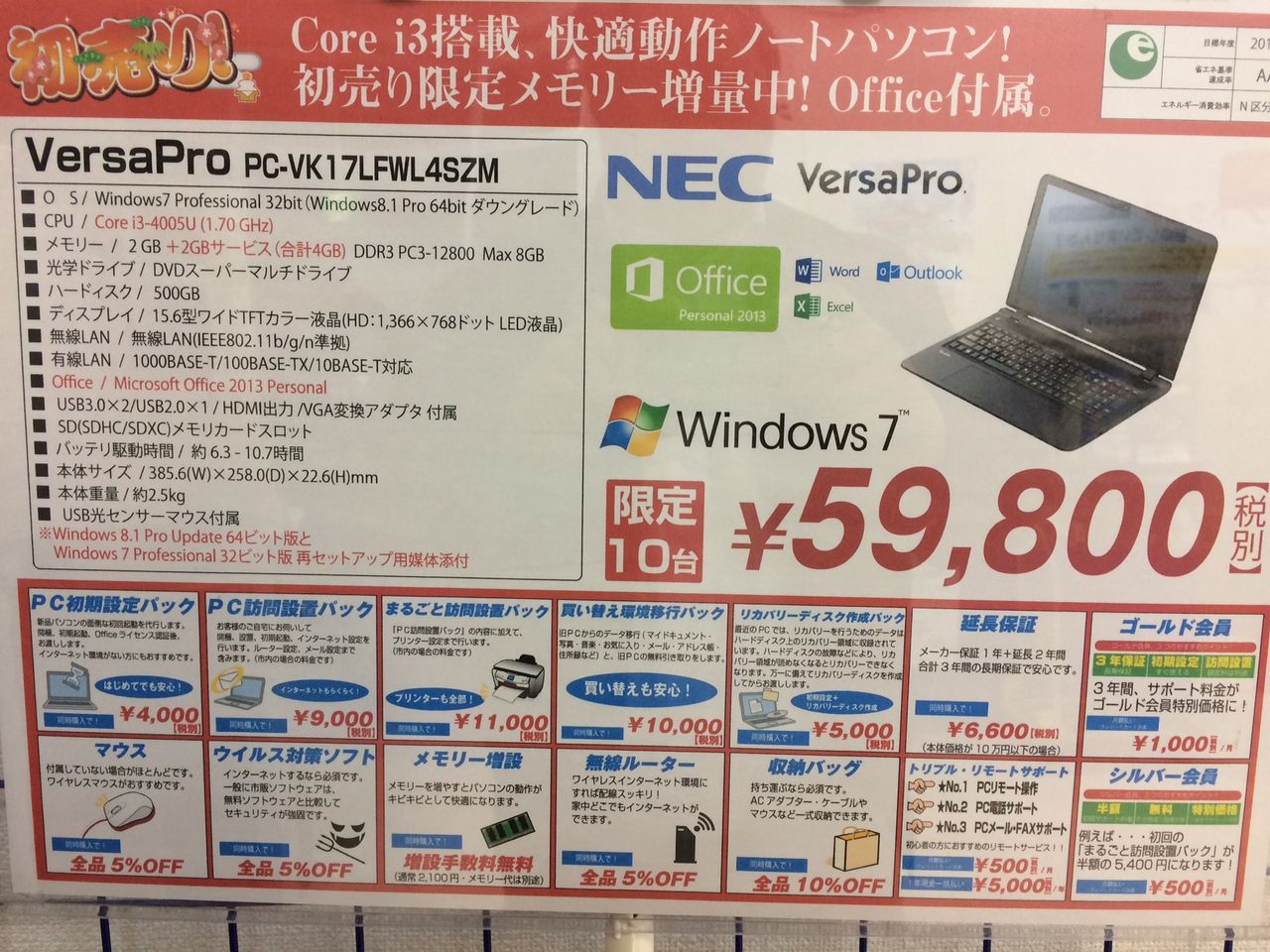 PC裏面に貼られたシールから製品型番と製造番号を入力して確認する方法と、