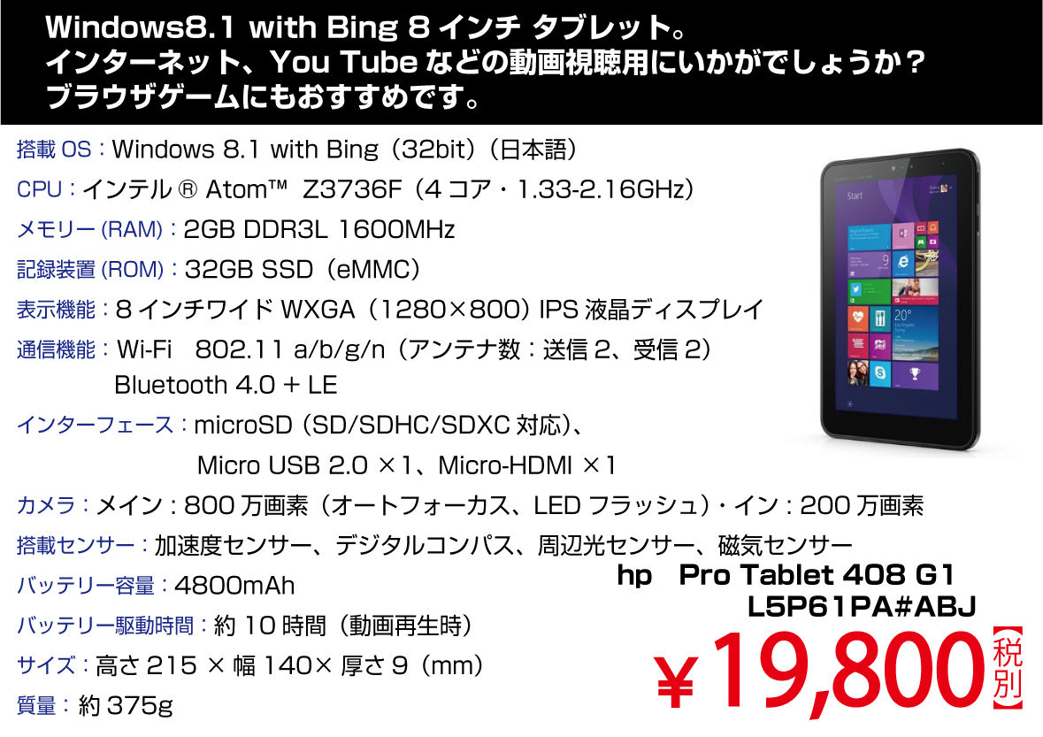 ◆Windowsタブレット2機種 入荷!!