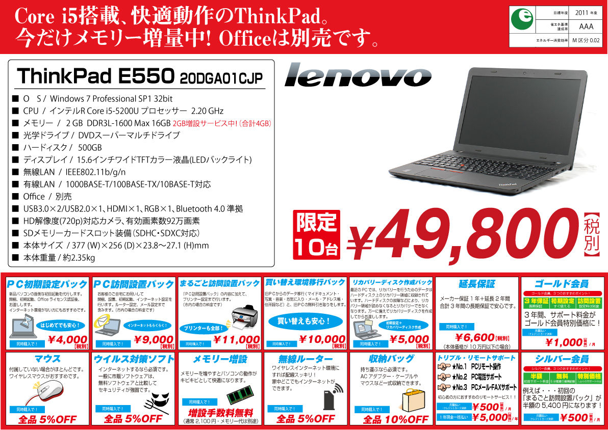 新品パソコンをご購入のお客様に、お得な特典をご用意しました!!