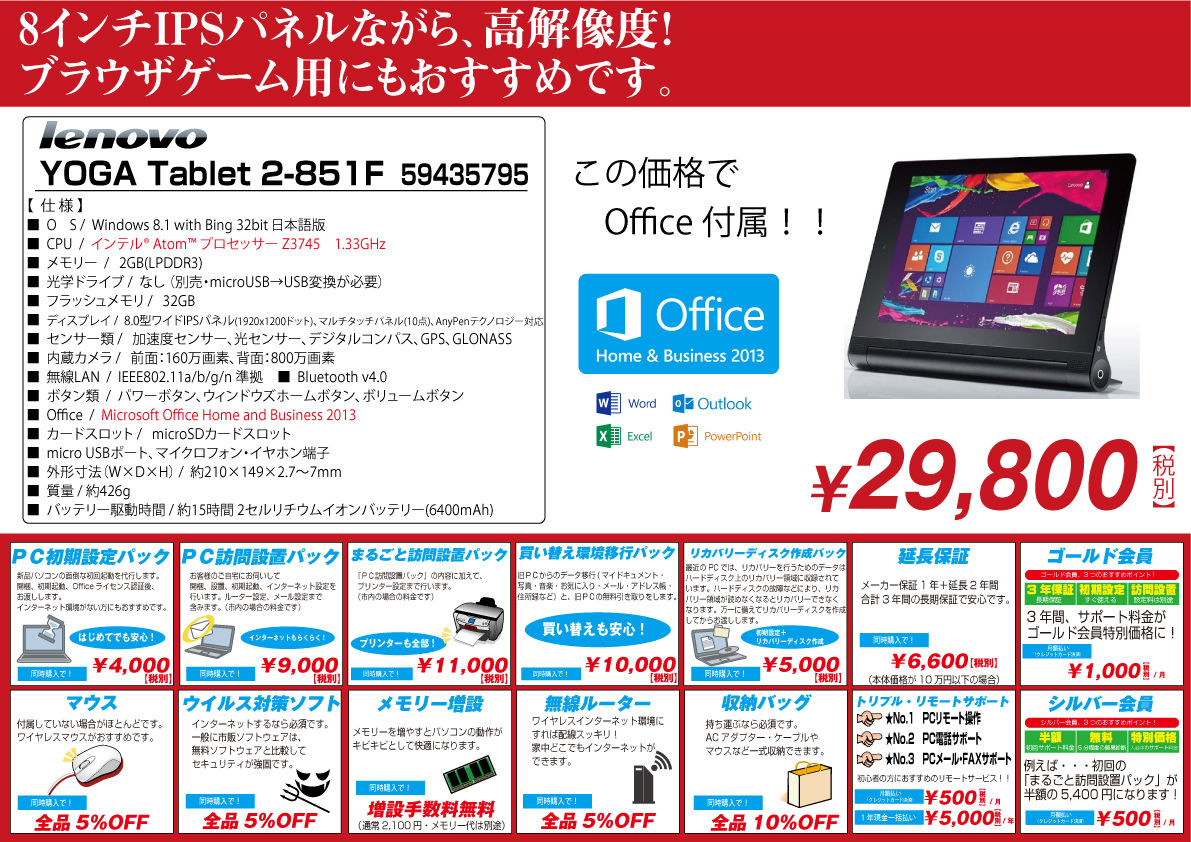 LENOVO YOGA Tab 3 8インチ(ZA0A0004JP) 28,800円(税抜)