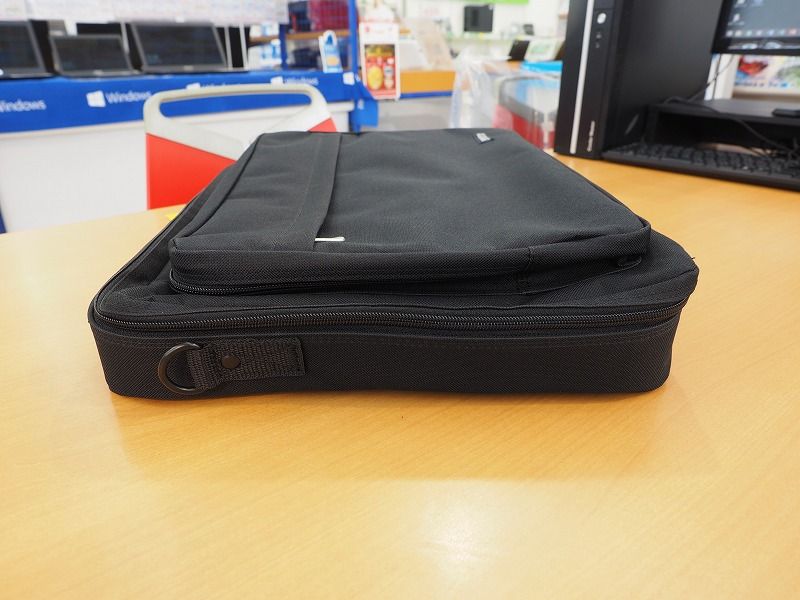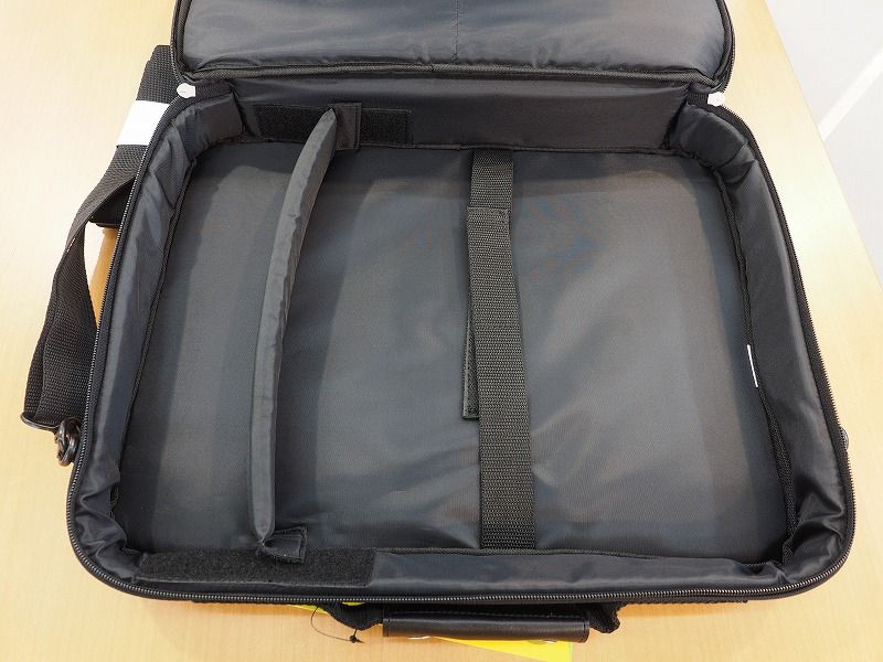 これ、ごく普通のよく見るタイプのPCバッグです。小物入れる所もあるし。