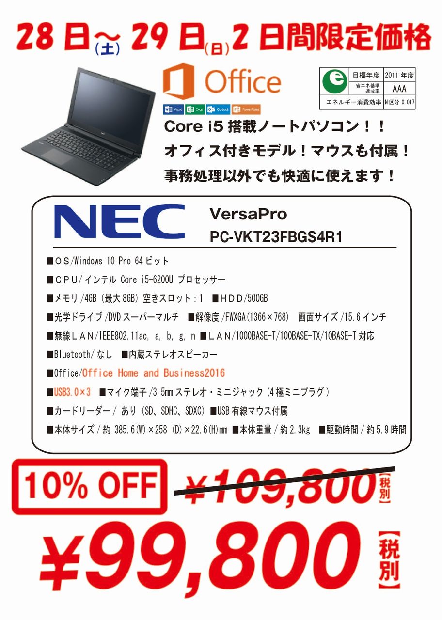今週末は超お買い得なノートパソコンです!!