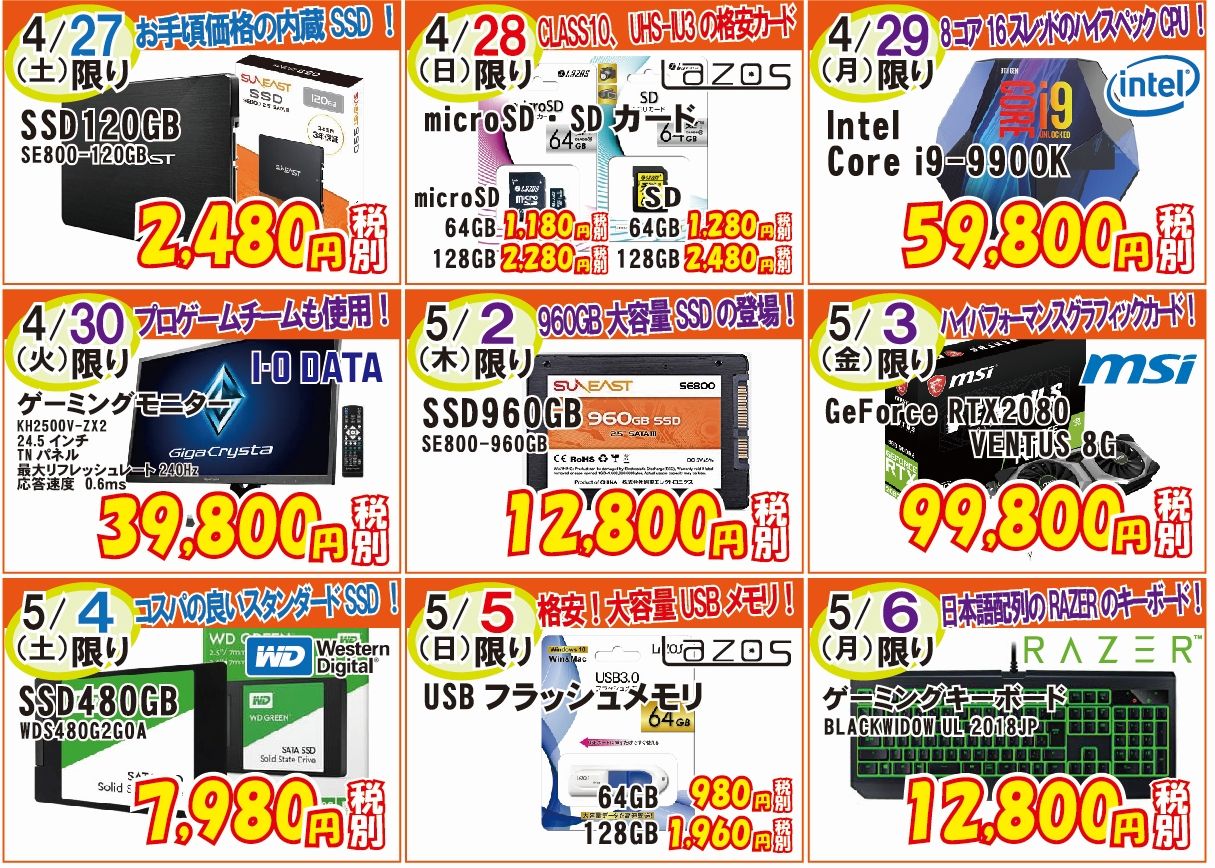 さて現在、青デポではゴールデンウィークセールを開催中です。