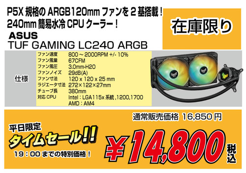 本日のタイムセール 5/31 ゲーミングPCにオススメ!簡易水冷!