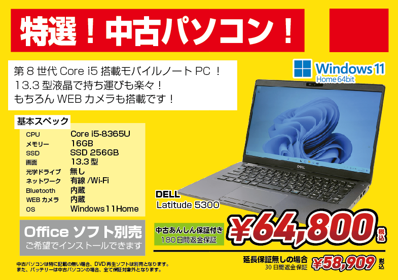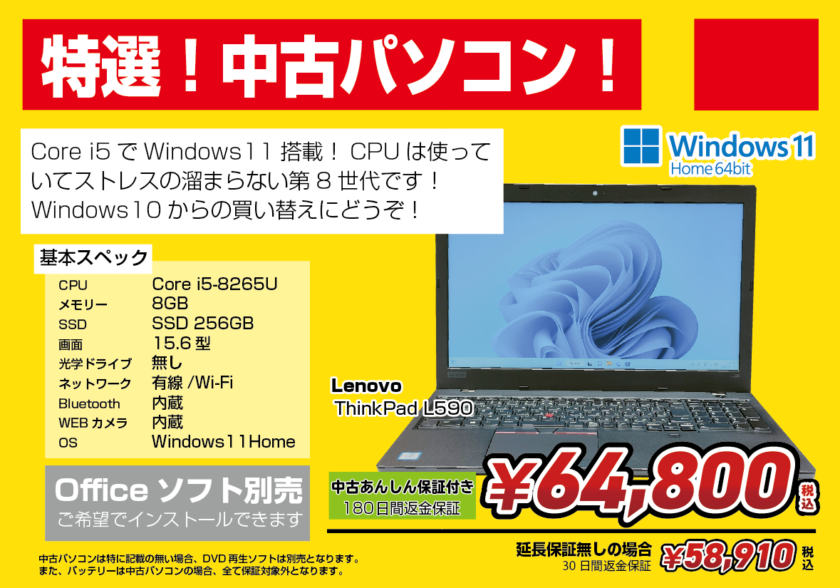 Windows11搭載 中古ノートPC!