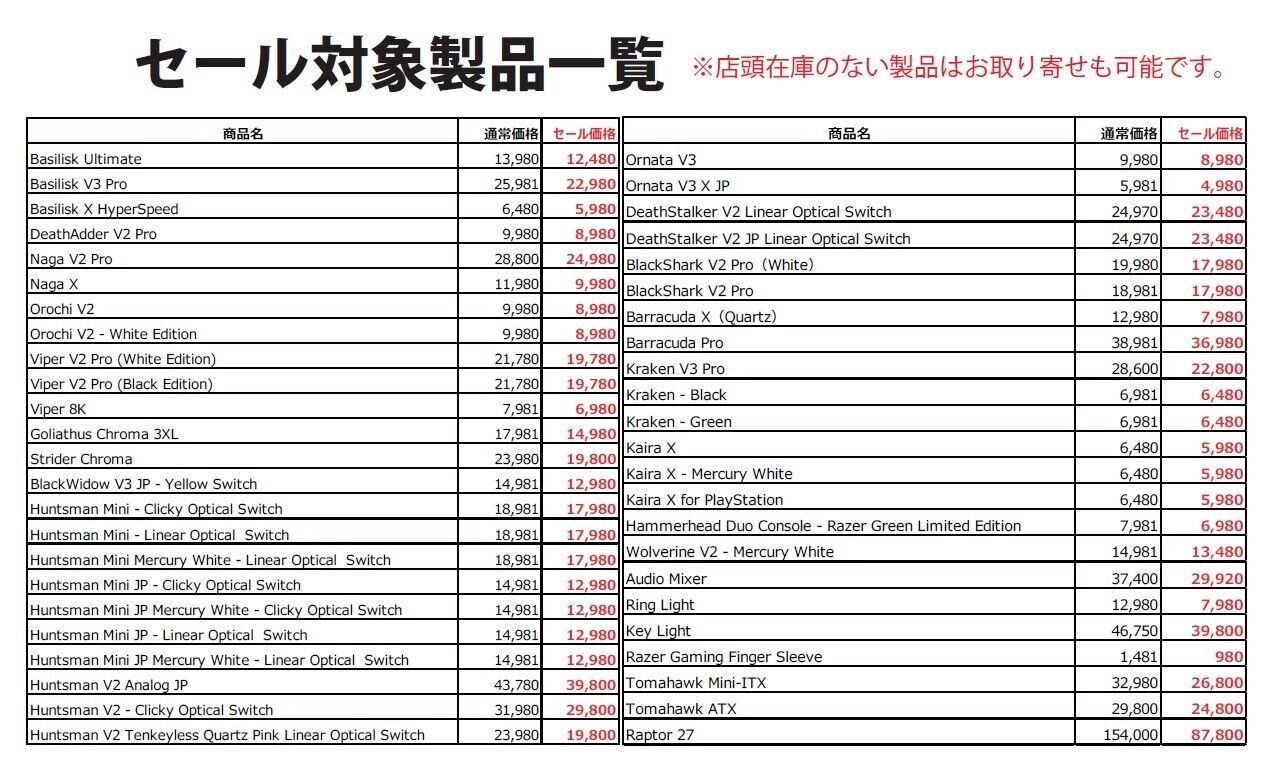 Razer製品セール! 4/27~6/8まで!
