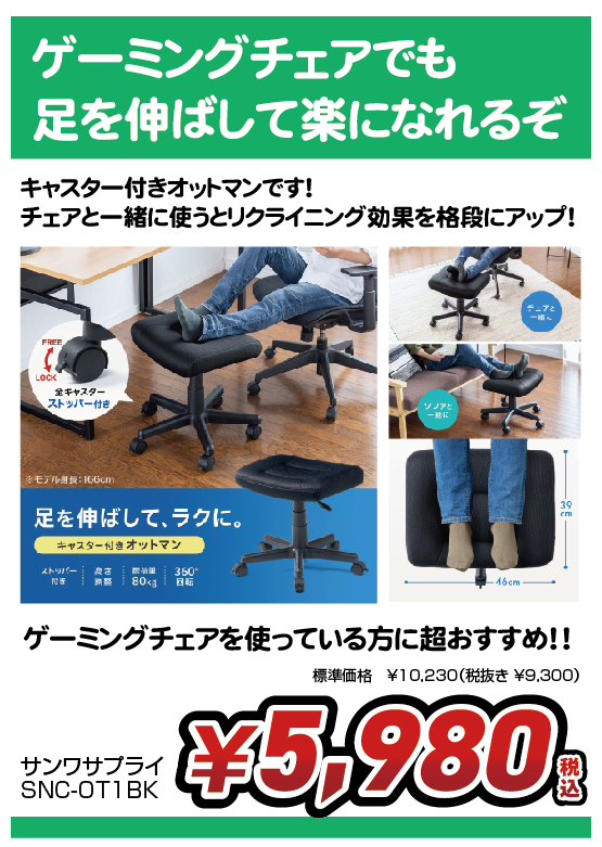 足を伸ばせるオットマンが入荷!