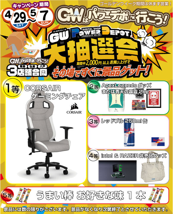 ※1等のゲーミングチェアは店頭展示品となります