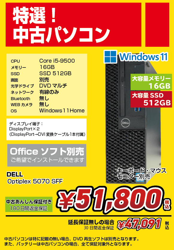 『中古パソコン選べる特典つき』