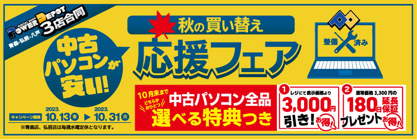中古パソコンが安い!秋の買い替え応援フェア!