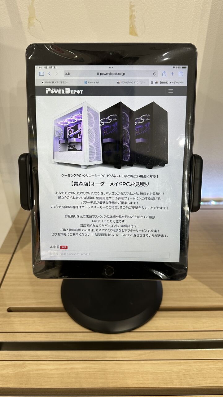 店内からでも簡単に見積ができるよう、タブレットを用意しました!