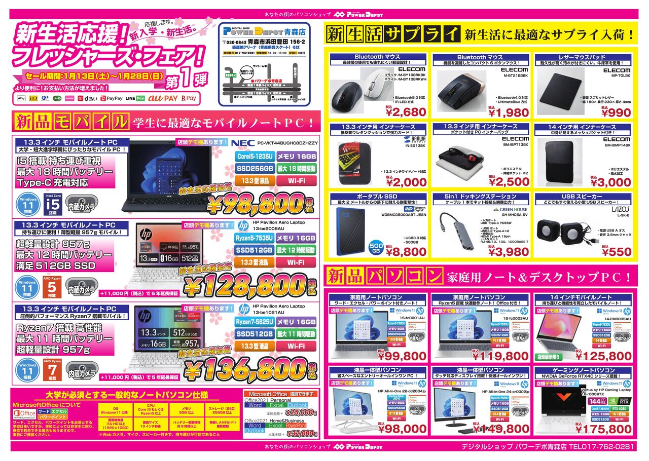 フレッシャーズ向けにノートパソコンコーナーをわかりやすく致しました!