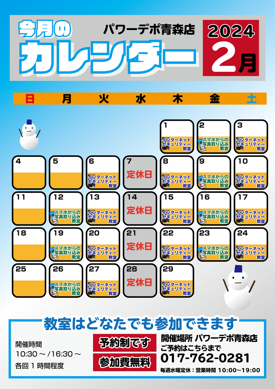 パワーデポ青森店では各種無料教室開催しています!ご予約は店頭・お電話にて!