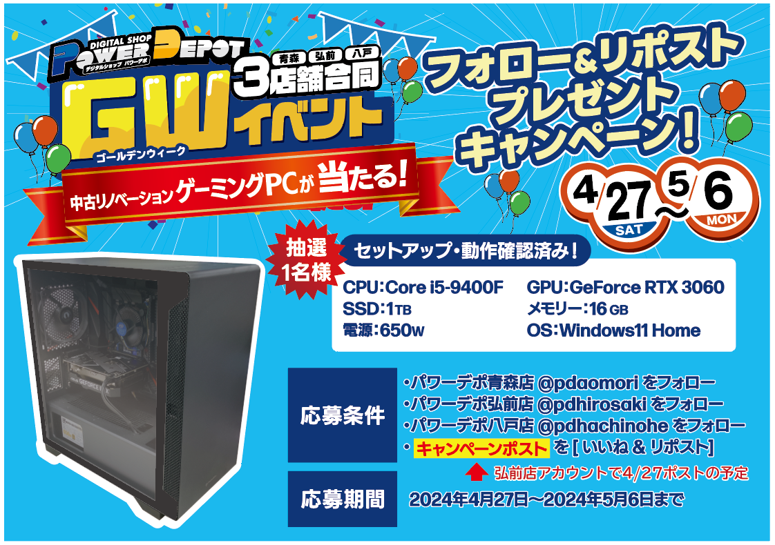 3店合同!中古リノベーションゲーミングPCが当たる!