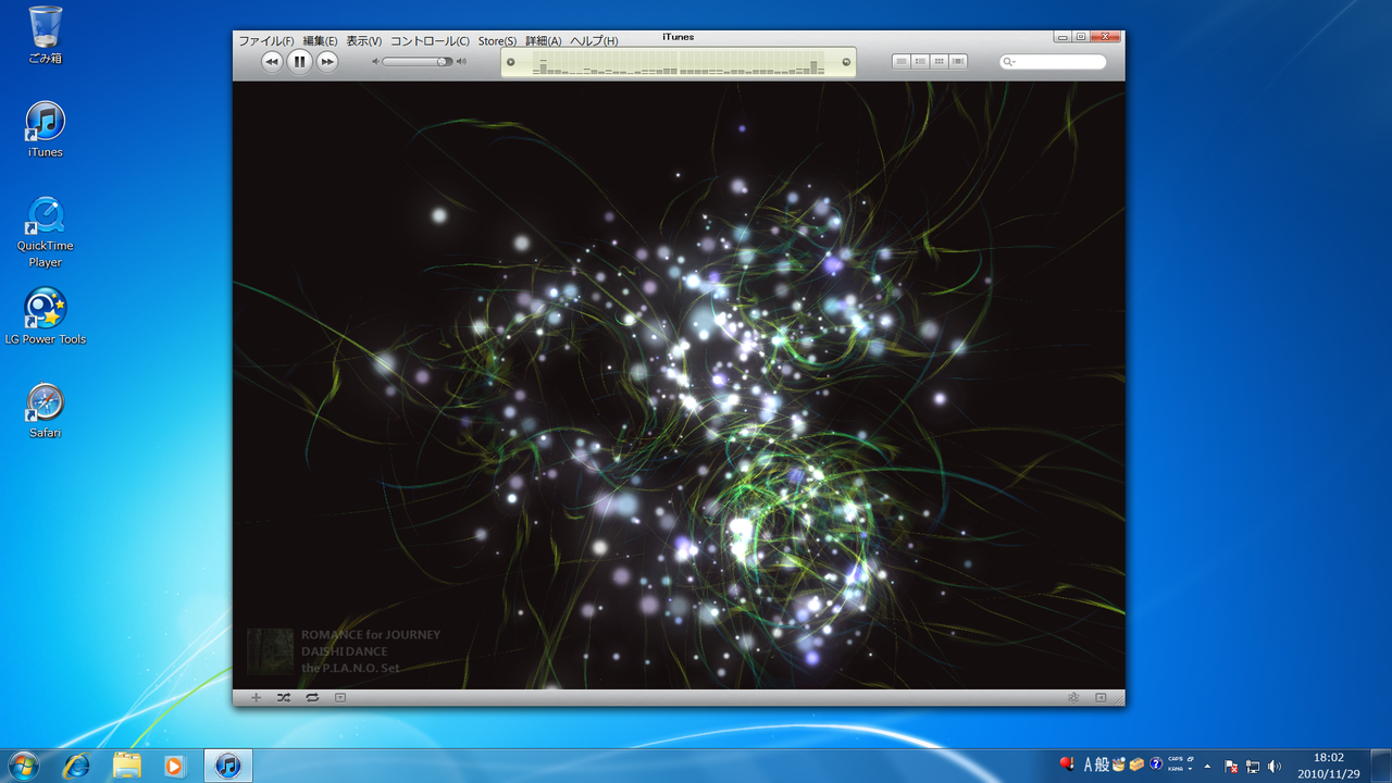 2010年11月30日 最近、iTuneに癒されてます。 iTune使っていても、なかなかビジュアライザをOnにすることがなかったのですが、なんとなくOnにしたら進化にビックリしました3D表示で、古いパソコンだとカクカクしてしまうような重い処理ですでも、すごくキレイで見てて飽きないです。結構前から変わっていたようですが、僕のようにビジュアライザを表示させてなかった方は、試してみてください。癒されます < 前の記事次の記事 > トラックバック