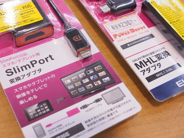 変換アダプターも MHL、SlimPortという規格があり、対応しているアダプターが必要になります。