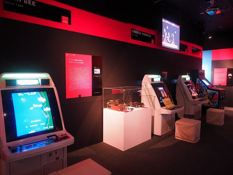 アーケードゲーム、家庭用コンシューマー機、パソコンに発売されたコンピュータゲームの中でも80年代の物が実際にプレイできる状態で展示されているんですが、会場内はこんな感じです。
