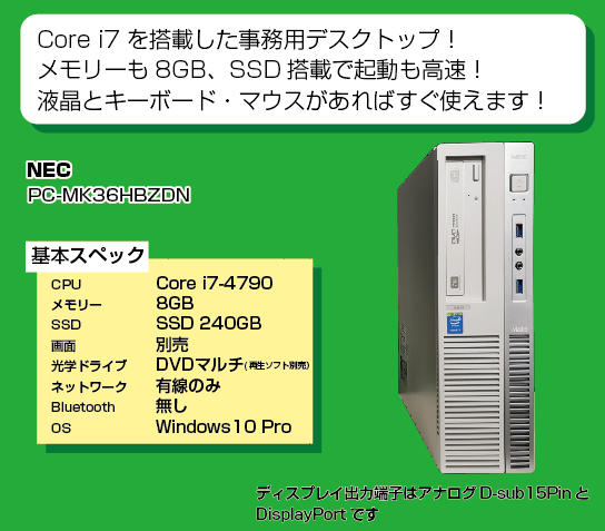 2022年05月23日 本日のタイムセール! 5/23(月) 中古デスクトップ! 17:00開始!本日のタイムセールはこれ!NECのスリムタイムデスクトップPC!第4世代Core i7+SSD搭載↓見た目はこんな感じ↓当店通常価格32,780円(税込)タイムセール価格21,780円(税込)なんと 11,000円引き!!!本日17:00開始です!!閉店の19:00まで!!合わせてパワーデポポイント3倍も開催!ご来店お待ちしております!! < 前の記事次の記事 >
