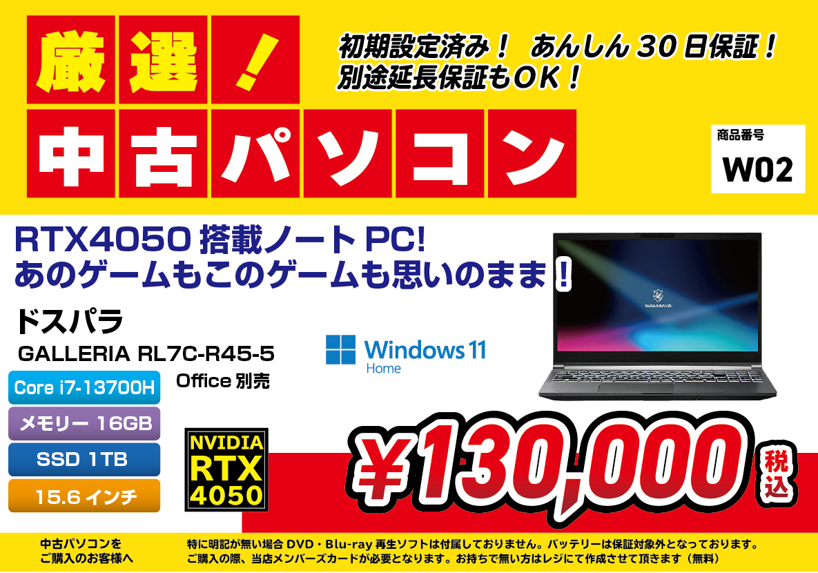 Core i7-13700H、メモリー16GB、SSD 1TB!