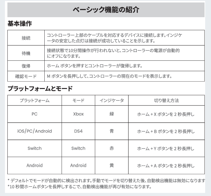 有線の接続のコントローラーになってます。