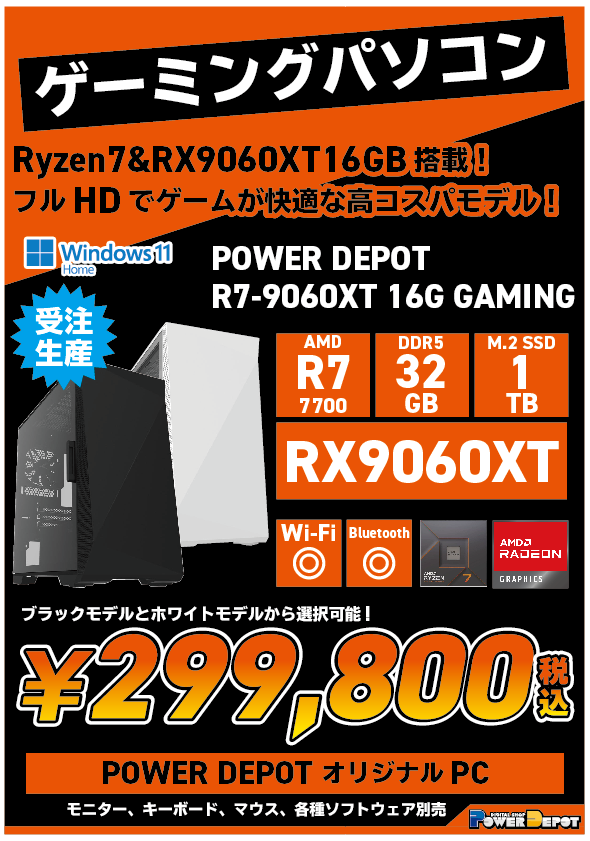 ■Ryzen7 7700×RX9060XT 16GB搭載でフルHD環境では、ばつぐんの高性能!