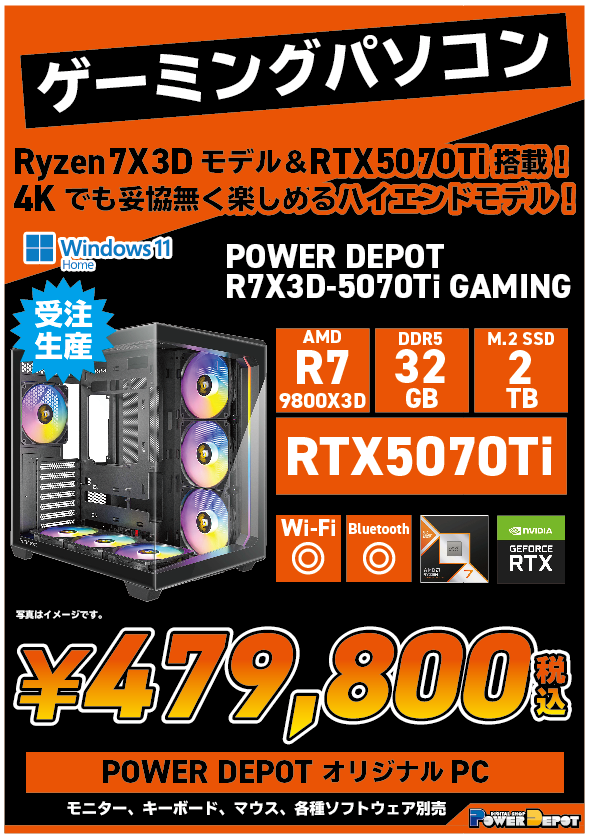 ■Ryzen7 7800X3D×RTX5070搭載でゲームの快適さ段違い!