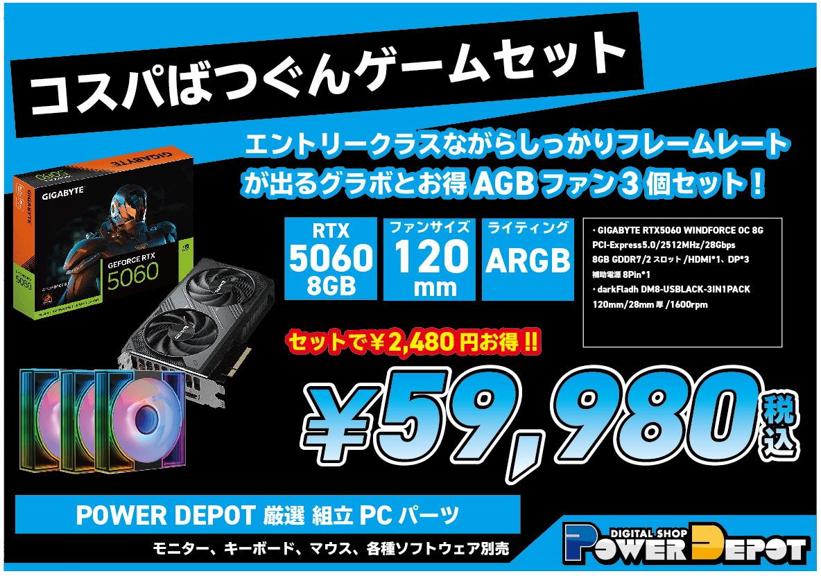■Ryzen7 5700X×RTX5060搭載で幅広いゲームを網羅!